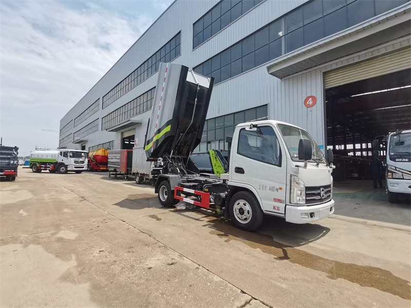無泄漏后裝壓縮垃圾車操作步驟三:傾翻卸料。根據不同的收運模式,可有以下作業方式: