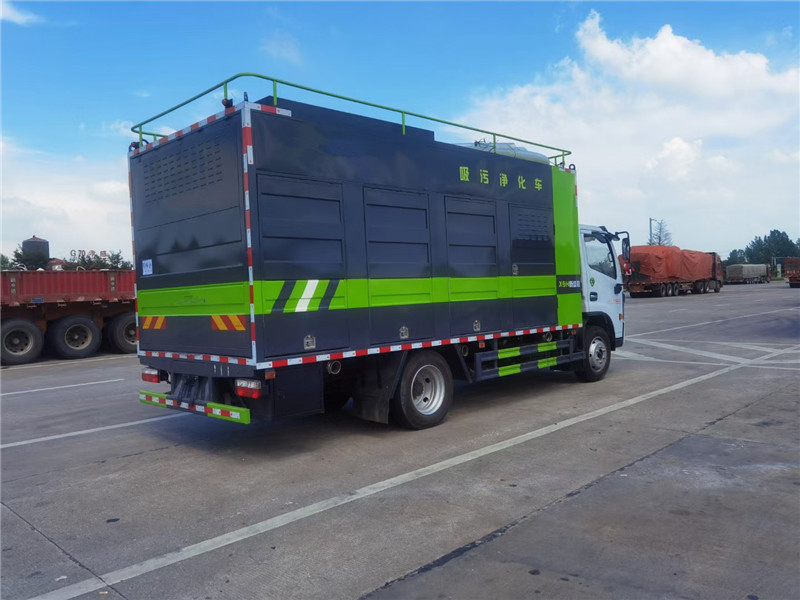 污水凈化車主要采用東風多利卡、大運奧普力、江淮康鈴、江淮駿鈴、江鈴順達、重汽豪沃、東風天錦,東風專底等國六底盤改裝而成,裝有發電機組、高壓清洗泵和卷盤、污水分離箱、疊螺脫水機等設備。可將化糞池的污物抽入車中進行渣水分離,由脫水系統將糞渣凝結脫水,從而排出清水,并將糞便壓榨成餅狀當有機肥使用。這種車輛可以同時抽排并進行污水凈化,效率遠遠高于清洗吸污車