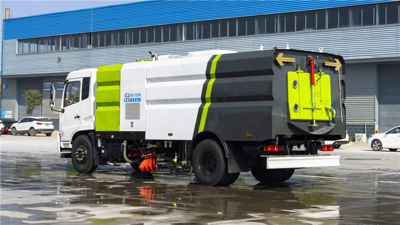 程力洗掃車廠家生產(chǎn)出一臺(tái)能洗、能沖、能掃的全能車型-東風(fēng)天錦洗掃車。可稱之為路面清掃專家
