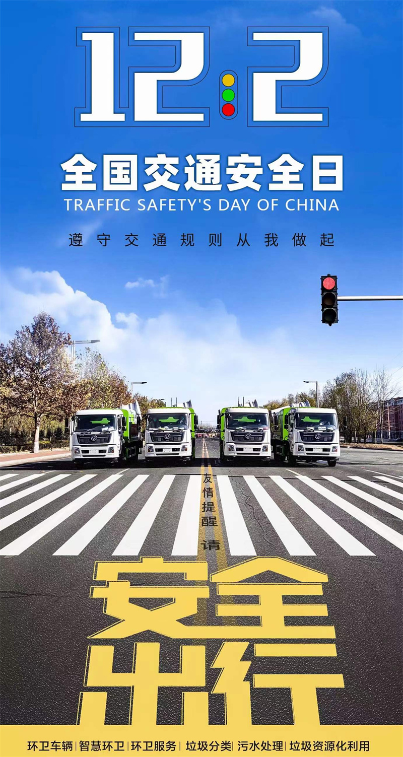 12月2日全國(guó)交通安全日,程力集團(tuán)在此提醒大家安全出行,遵守交通規(guī)則從我做起。程力集團(tuán)環(huán)衛(wèi)車輛、環(huán)衛(wèi)服務(wù)、垃圾分類、污水處理、垃圾資源利用回收領(lǐng)航者。