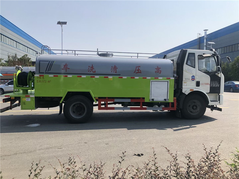 總結,這款東風多利卡清洗吸污車通過全功率式取力器推動高壓泵產生高壓射流水,通過高壓噴頭反射水增壓作用沖洗管道內的各種堵塞物來從而達到疏通清潔管道的目的。