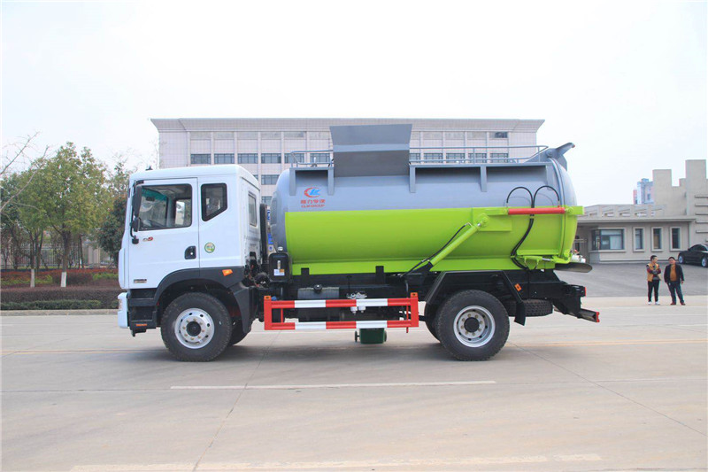 總結,這款東風后雙橋壓縮20方垃圾車在卸垃圾時可通過球閥排出,車箱前下部裝有污水收集箱,收集箱內污水,通過球閥定期排污。