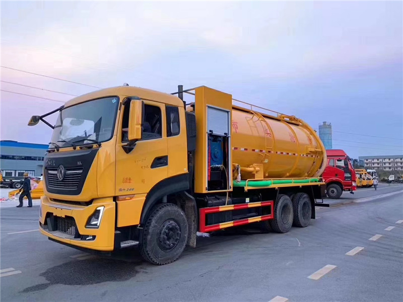 罐體容積約15立方米,其中清水約5方,污水約10方,罐體材料8mm厚碳鋼板,封頭8mm厚,配備通潔250流量高壓泵,2BE-204水環泵,清水箱兩側各一個消防栓進水口,清水罐底部一個65排水閥,視污管,兩倉球閥互通,罐頂一個互通,高壓泵接氣吹,高壓泵底部安裝一個小球閥,帶夾心取力器,100米19/22口徑高壓管,后封頭卷盤180°旋轉,帶兩側卷簾門,水環泵水箱為不銹鋼材質,后封頭安裝600液壓排污口。