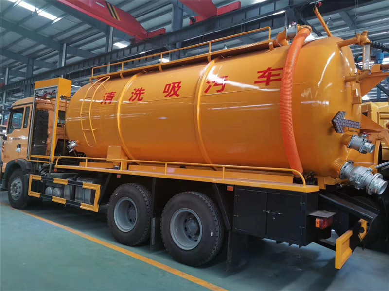 豪沃清洗吸污車是我廠設計特別適宜于下水道污泥抽吸,清撈,裝卸,管道清洗為主的大型環衛系列用車。