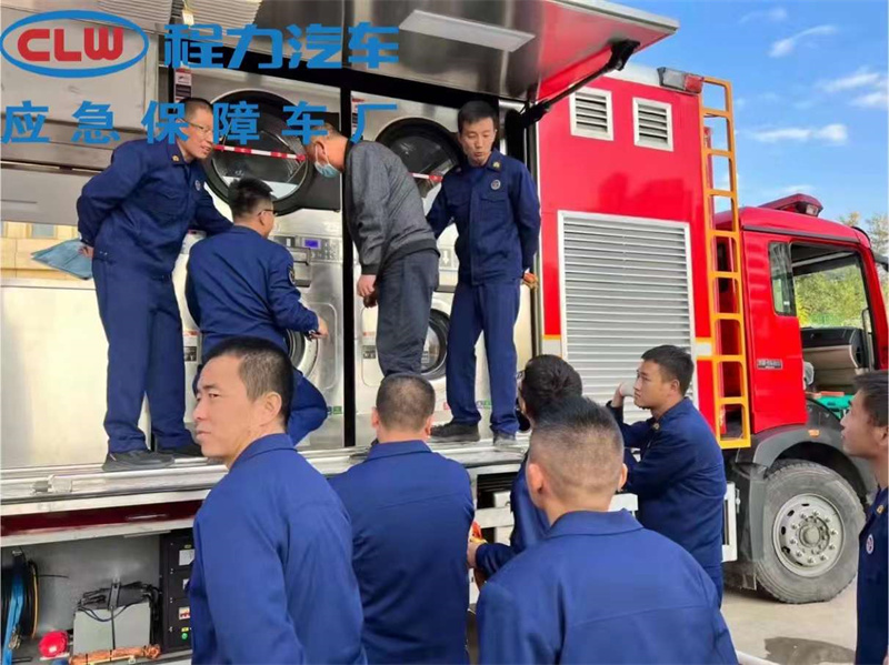 程力專汽大型被服洗滌消防車,結合洗滌設備特點和應急救援實戰中衣物洗滌需求創新設計而成,整車性能優越,操作方便,自我保障能力強,集洗脫、烘干等多功能于一體,單次工作(約一小時)最大可洗脫、烘干100kg衣物,能將臟衣物快速處理成潔凈、干爽的衣物,是應急救援現場重要的后勤保障車型。