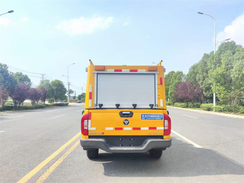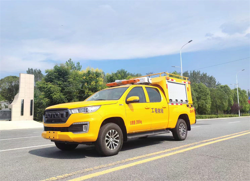 該車頂部安裝了工程警燈,車身采用醒目的工程黃,并貼有”工程救險車”的大字。多方位圖:底盤配置:鹵素大燈、245/70R16輪胎、鋁合金輪輞、仿皮座椅、ABS+EBD、前盤后鼓、前排普通三點式安全帶、后排中間兩點式兩邊三點式安全帶、LED日間福田四驅皮卡工程應急搶險救險車 皮卡式應急搶險救援車具有高承載性,功能實用性和耐用性,具備快速的應急響應能力。