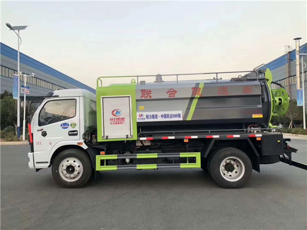 程力國六聯合疏通車儲罐選用高品質武鋼板才6毫米做成,吸污容量4立方米,配5噸清洗吸污車專用型吸污泵,儲罐帶液壓機升舉設備,后不銹鋼封頭可液壓機開啟,帶自動流出口,防溢閥,帶洗手消毒設備,視污對話框,兩側儲水箱容量1.5立方米可相通,高壓清洗機采用德國品牌,跟車配置一根8米吸污塑料軟管及60米清理管,其他按生產廠家標準配置生產制造.此車具備免稅公示(可免繳汽車購置稅)。