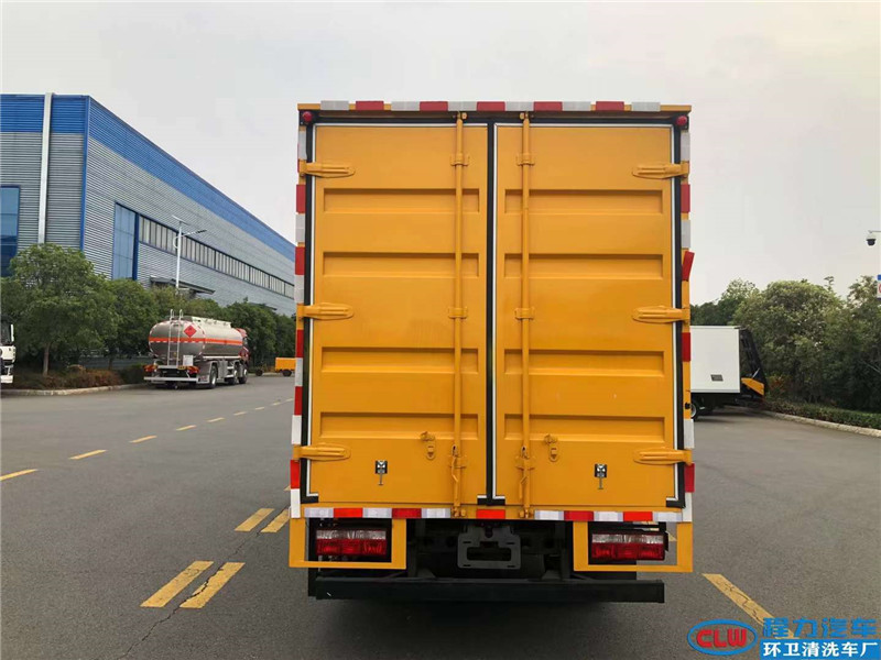 側(cè)面和后面各一個(gè)雙開門,箱內(nèi)設(shè)計(jì)兩個(gè)貨架,箱內(nèi)設(shè)計(jì)照明燈