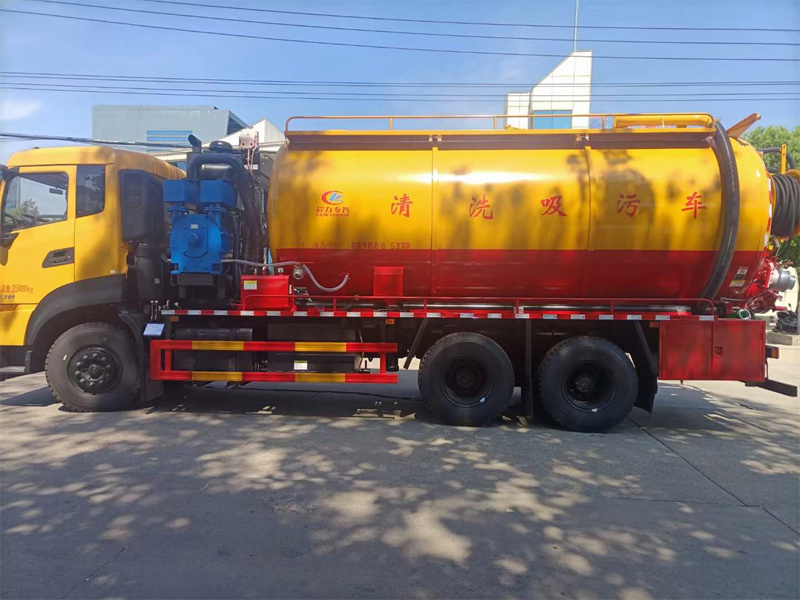 4:后封頭可旋轉齒輪自動液壓絞盤,標配通徑25高壓管100米,耐壓22mpa,后封頭下部開600mm內通徑液壓排污口1個,后封頭右下4寸排污閥1個,后封頭6寸排污球閥1個(不銹鋼)4寸吸污閥1個(不銹鋼),右側后尾部6寸偷排口1個(不銹鋼),副發進氣管用125mm,水循環泵水箱為不銹鋼,1個工具箱,防溢流裝置,后尾部裝雙箭頭燈,清水罐頂部裝排氣閥1個,清水罐底部裝4寸排水閥1個