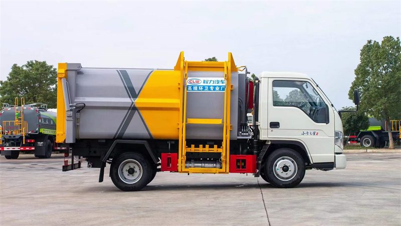 ——藍牌?裝側?壓縮?容積4方,箱體內帶推鏟,240L垃圾桶生活垃圾可拉約35桶,全柴95馬力,駕駛室內、室?均外?可操作。