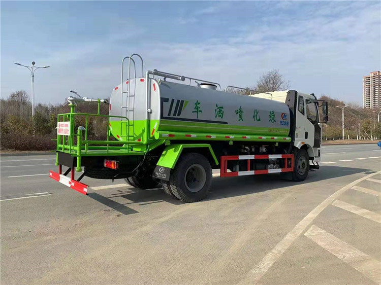 專用配置:罐體容積 13立方,罐體采用國標Q235碳鋼材質,罐體厚度4MM,前后封頭5MM加厚型,罐體內雙層隔板具有防波蕩作用,以減輕汽車行駛時罐內液體沖擊;灑水車整車及外形尺寸嚴格按照國家機動車公告制作而成;裝配大功率專用灑水泵,前沖、后灑、側噴、后平臺帶綠化灑水炮,灑水炮可全方位旋轉,可連續調成直沖狀、大雨、小雨、毛毛雨;配消防接口,自流閥,濾網,帶自吸自排功能。前封頭帶水位計,后平臺主管路帶1寸澆花接口,后爬梯,帶1個消防接頭,帶1個自流閥,1個過濾裝置,其余標配。1、可選裝后平臺帶霧炮機組用于噴霧降塵、農藥噴灑作業;2、可選裝前置電子灑水炮駕駛室操作;3、可選裝氣動球閥駕駛室操作。