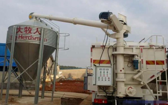 運送介質(zhì)品名: 膨化及顆粒飼料、粉料;介質(zhì)密度:500kg-600kg立方米,罐體有效容積:42立方米,罐體外形尺寸:9000×2495×2310(mm),飼料裝載量20-21噸,380V電動絞龍卸料,罐體內(nèi)部可分4倉,裝卸不同種類飼料,垂直卸料高度8.2米,水平工作半徑7.2米。液壓絞龍式適用于無電力配置場所飼料裝卸運輸。