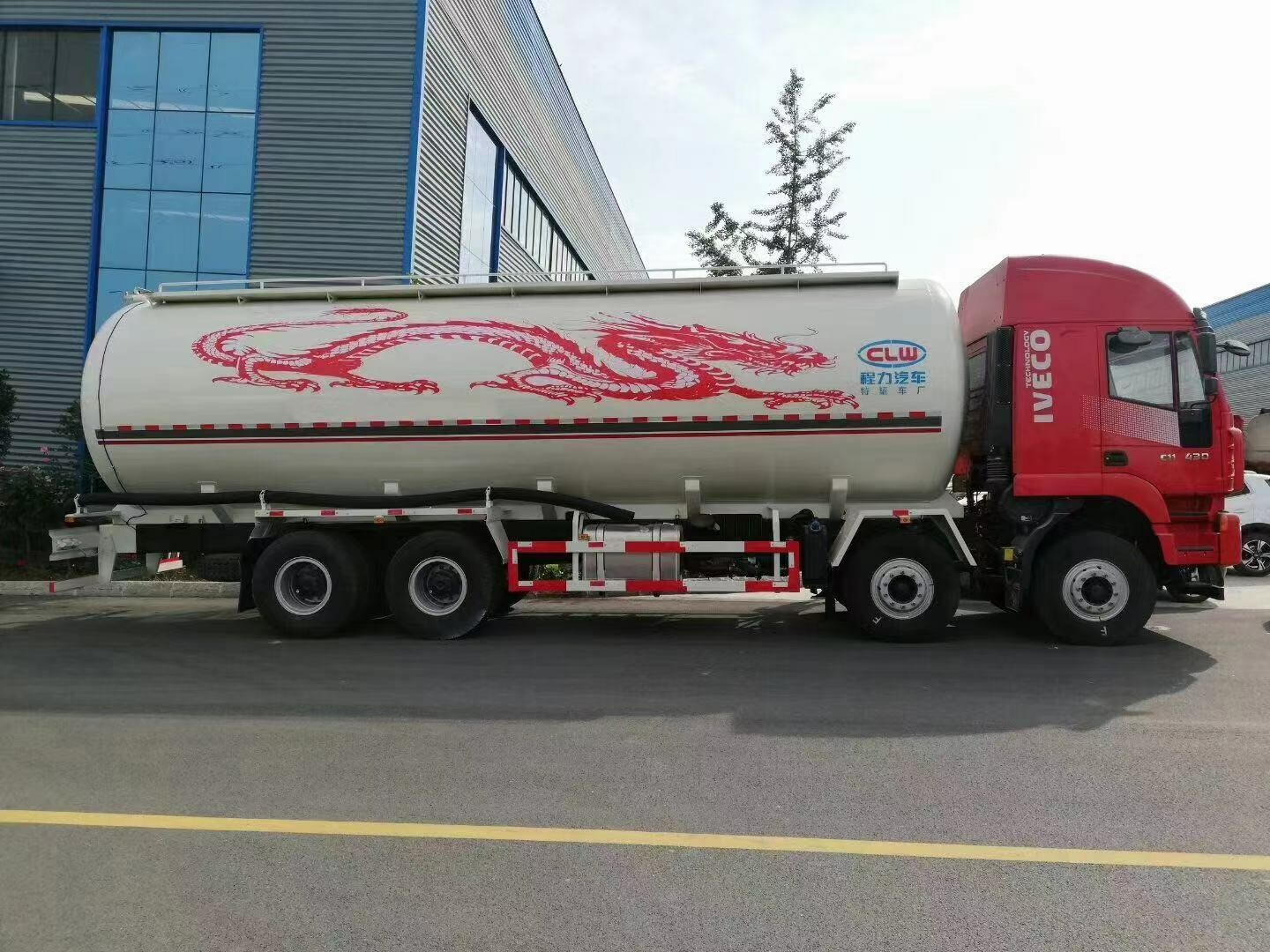 底盤采用上汽紅巖M500平頂駕駛室,上汽菲亞特紅巖動(dòng)力總成有限公司430馬力國(guó)五發(fā)動(dòng)機(jī),缸內(nèi)制動(dòng)技術(shù),法士特12檔變速箱,軸距2025+4375+1400,300直通三層車架,雙前橋7.5噸,雙后橋16噸輪減橋,12.00R20鋼絲胎,同步歐洲技術(shù),高端品質(zhì)。低密度粉粒物料運(yùn)輸車由專用車底盤、散裝水泥車罐體、氣管路系統(tǒng)、自動(dòng)卸貨裝置等部分組成。適用于粉煤灰、水泥、干混砂漿、石灰粉、礦石粉、顆粒堿等無(wú)化學(xué)反應(yīng),比重不超過1.8  ,顆粒直徑不大于0.1mm粉粒干燥物料的散裝運(yùn)輸。主要供水泥廠、水泥倉(cāng)庫(kù)、干混砂漿站、大型建筑工地使用,可節(jié)約大量包裝材料和裝卸勞動(dòng)。罐體容積:36.4方,罐體4個(gè)厚,封頭5個(gè)厚,三倉(cāng)三罐口,耐高溫球閥,帶壓力表,10方空壓機(jī),8米卸料管,鋁合金延邊渤海12.5方空壓機(jī),立式空壓機(jī),半掛使用。