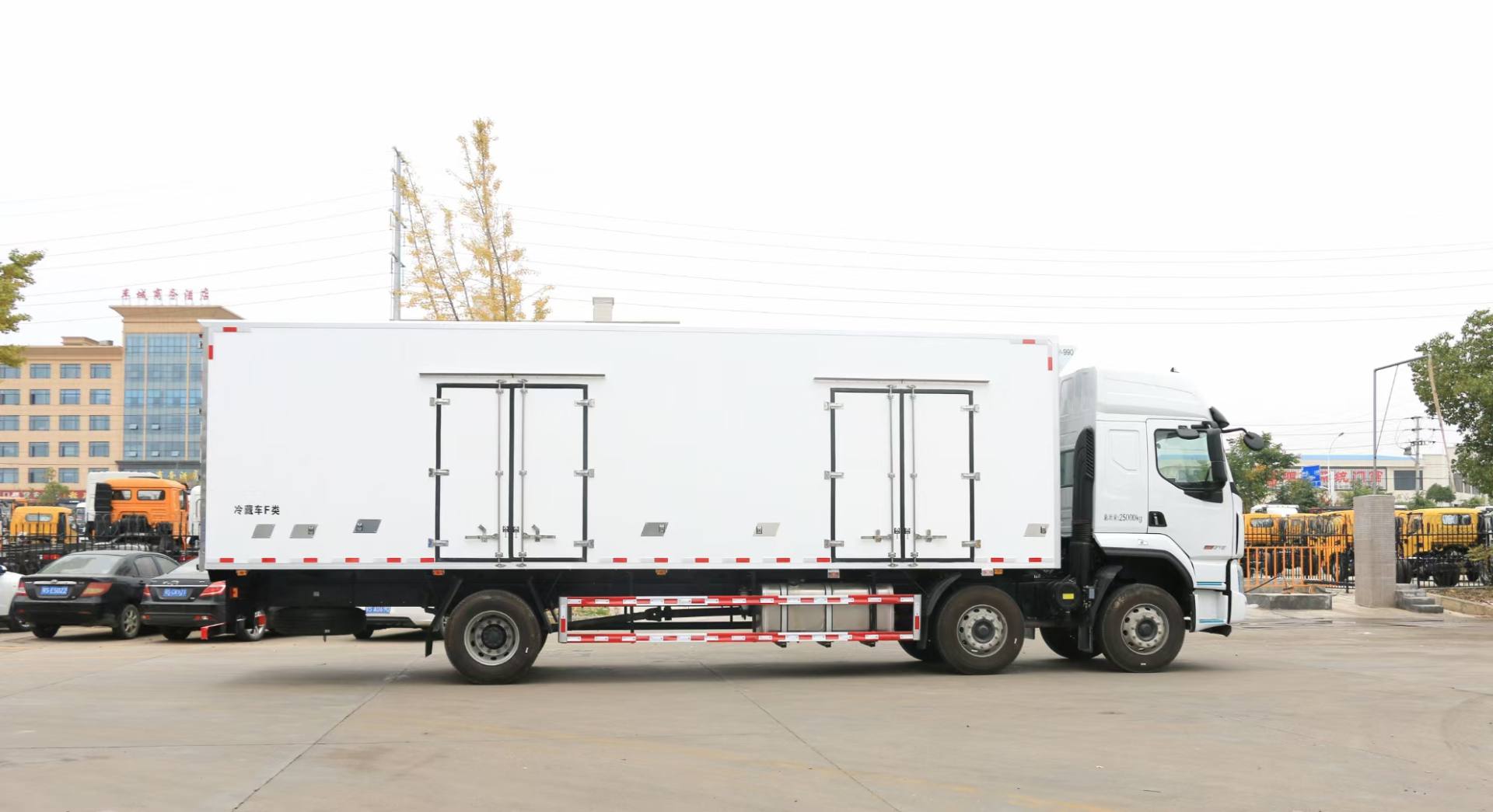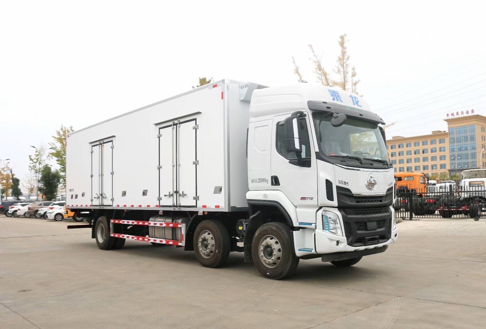其它 | 選裝保險杠、翼子板,選裝后視鏡,選裝車門下飾板,選裝臥鋪側窗,選裝綠玻璃,選裝導流罩,選裝平頂駕駛室,選裝高頂駕駛室,可選駕駛室頂部“乘龍”標志,選裝前保格柵.貨廂可選單開門,雙開門或不開門型式,可選裝功率相當的其它廠家的制冷機組,可選裝前置式或底置式制冷機組;廂式車車廂頂部封閉,不可開啟.選裝可升降液壓尾板,起重尾板收起狀態的水平長度295mm,尾板質量為550kg.總長/廂長/前后懸/整備質量/離去角對應關系: 12000/9600/1445/3155/10920/10,11100/8600/1445/3155/10920/10,10300/7800/1445/2755/10920/11;多個尺寸差異導致的質量差異在3%內.防護裝置料材質:Q235,螺栓連接,后部防護裝置的主要尺寸參數:斷面尺寸120×80mm,離地高度480mm.ABS型號/企業:ABS-E 4S/4M/威伯科汽車控制系統(中國)有限公司.應裝有衛星定位的行駛記錄儀. B6.2NS6B230對應油耗值為30.3L/100km, B6.2NS6B260對應油耗值為30.3L/100km,YCS06245-60A對應油耗值為30.3L/100km,YCS06270-60對應油耗值為30.3L/100km,D6.7NS6B290對應油耗值為30.3L/100km. |