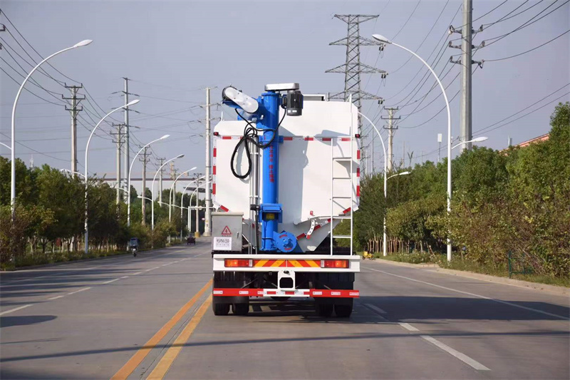 箱體配置:罐體材質采用高強鋼制作,整車3條絞龍,3個5.5KW電機帶動,頂部絞龍用液壓控制舉升,可左右旋轉180°,罐體內分為叁個倉,可以獨立控制各分倉卸料順序和速度。