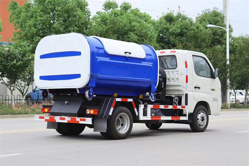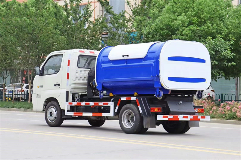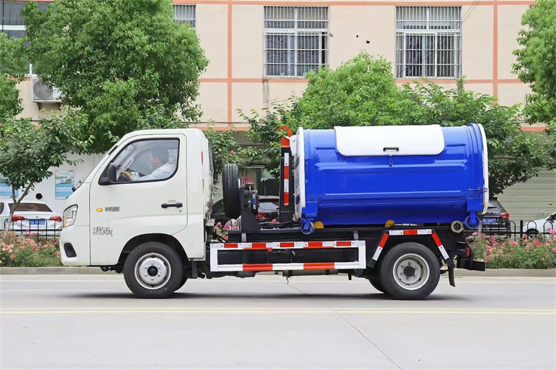 底盤配置: 2750軸距,1550m車身,東安115馬力,5檔變速箱、175R14后雙胎、122后橋,ABS、電動助力轉向、中控鎖、空調。                              上裝配置:可配3方垃圾箱,大臂雙缸舉升,強度合金鋼一體式主勾臂,加強型副梁,鑄鋼尾托輪,電控室內外液壓操控裝置(可選裝手自一體),上裝最大提升能力1500KG,?液壓完成上箱+下箱+鎖緊+自卸等作業,實現一車配多箱的循環轉運。