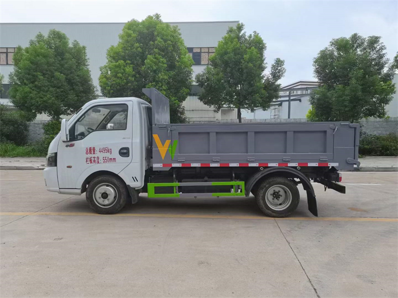 東風途逸藍牌自卸式垃圾車,總質量4495、2800軸距,全柴95馬力發動機。