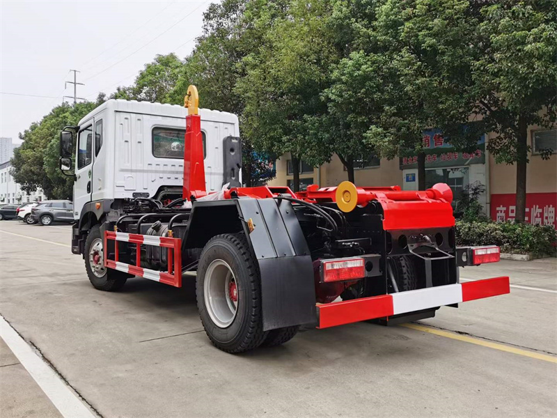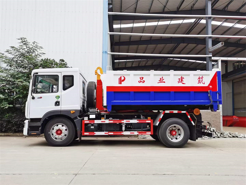上裝配置:起?重能力12方移動垃圾?站,手電一?體,橫向鎖緊,液壓支腿,?海普瑞斯油缸,?中梅多路閥,?高強度合金鋼一體式主勾?臂,加?強型副梁,鑄鋼尾托輪,液?壓完成上?箱+下箱+鎖緊+自卸作業等,實現?一車配?多箱的循環轉運。