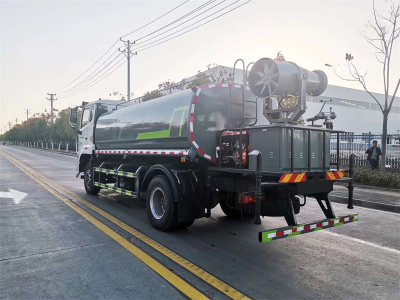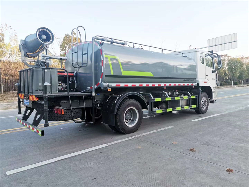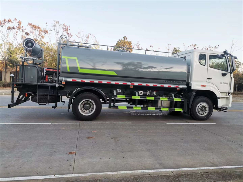 9、(選擇項)后平臺可加裝30型柴油全自動霧炮機,操作靈活,使用安全可靠,霧化距離25米-30米左右(霧化射程會受濕度、溫度、風速等各方面天氣因素的影響,另外天氣干燥地區一部分在空氣被蒸發掉),遙控和人工控制操作,可隨意控制調節水平旋轉噴霧角度。