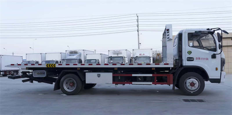 東風多利卡D8黃牌一拖二清障車:玉柴165馬力發動機,6檔變速箱,245真空胎,空調,方向助力,電動門窗,5噸上裝,5噸卷揚,5噸后托臂,電泳花紋一體板,雙側聯動操作。