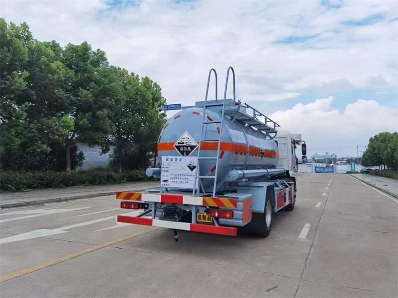 10噸東風天錦鋼襯塑減水劑供液罐車:可運輸鹽酸、硫酸、氫氧化鈉溶液、磷酸溶液、硝酸、乙酸溶液等8類腐蝕品。罐體容積10.3立方。整車自重7805kg