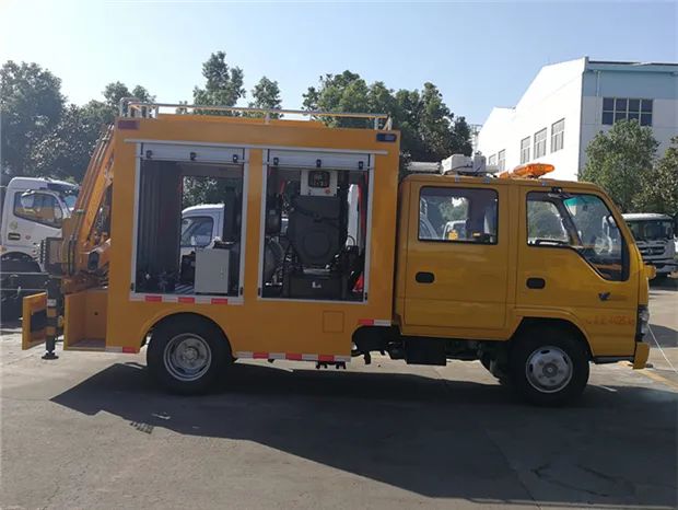 程力為專業生產工程救援車廠家,該款為慶鈴五十鈴工程搶險車帶吊機,每小時達到1200立方。