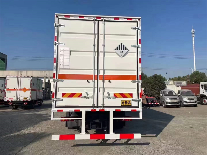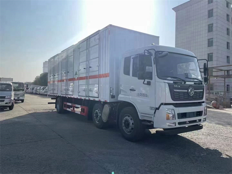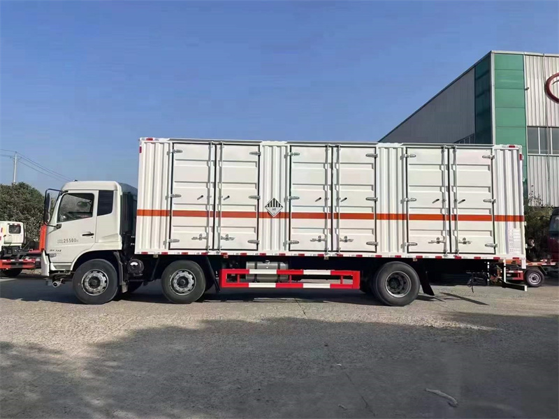 9米危險品運輸車,東風天錦小三軸雜項危險物品廂式運輸車,箱體左右兩邊選擇三開門。