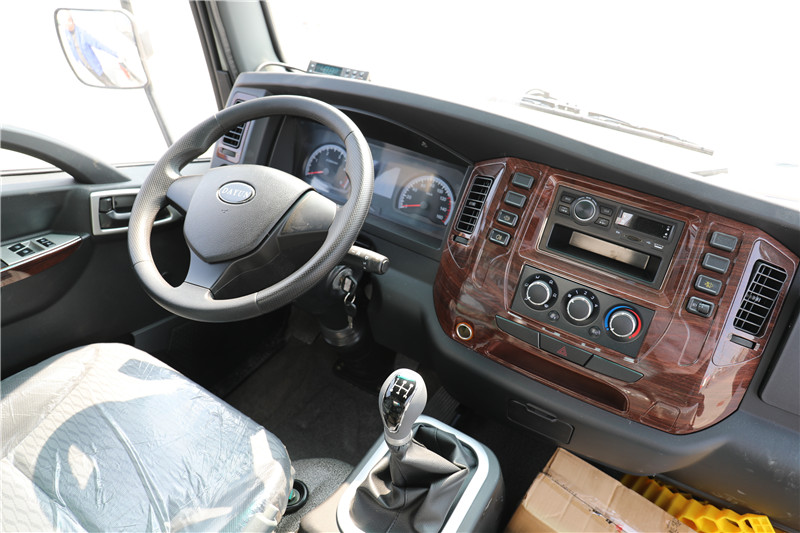 大運小卡冷藏車配置為2820軸距,1735新奧普力單排,中德合資德威云內 D20TCIF1(云內126),法士特五檔變速箱,130后橋, 195/70R15LT輪胎,140大梁,ABS、電動空調、電動門窗+遙控中控門鎖、MP3(藍牙)、70L鍍鋅板燃油箱、
