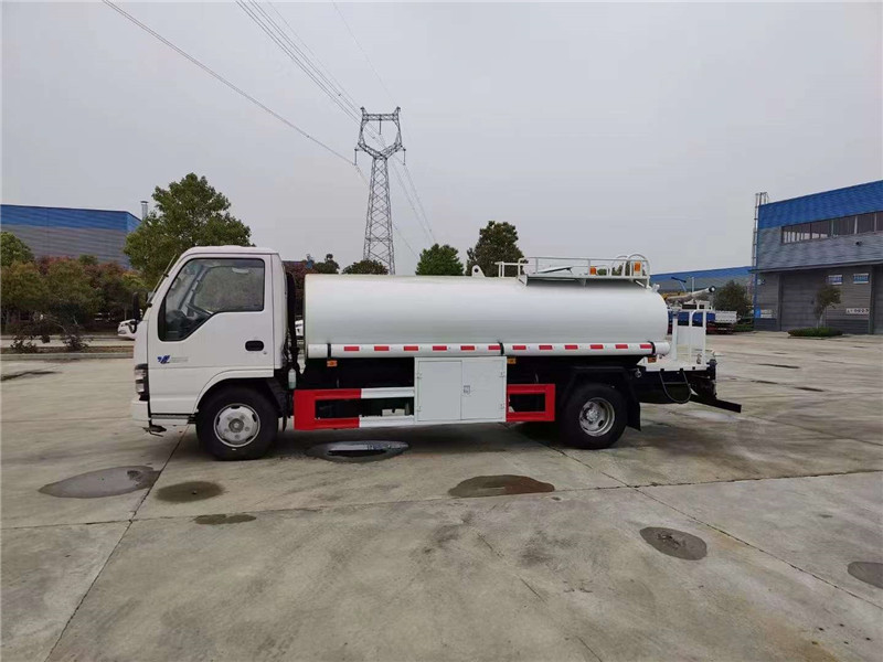 出口海外五十鈴5噸運水車,飲用水運輸車罐體主要食品級304不銹鋼,帶不銹鋼泵管道閥門,帶前沖后灑,多功能一體,可運送飲用水、園林綠化、道路噴灑。