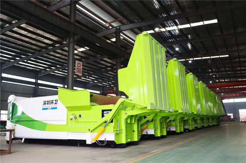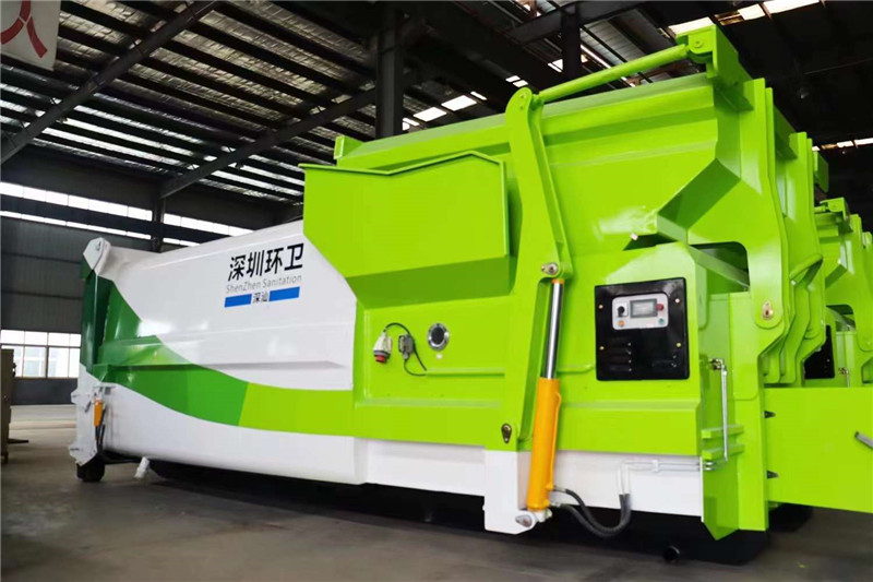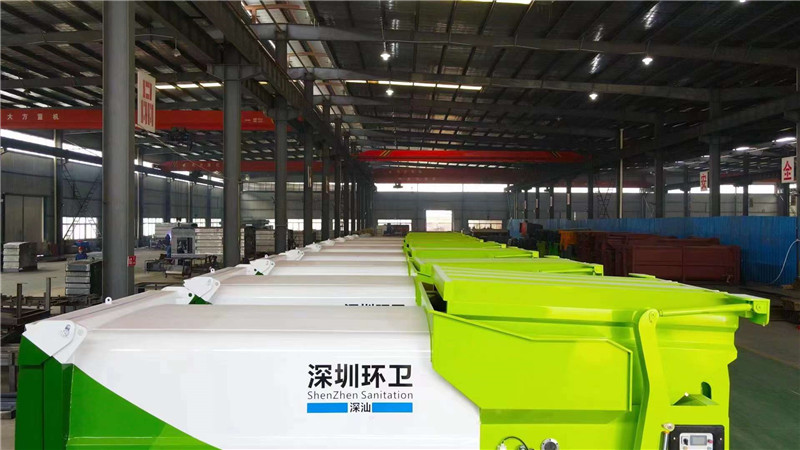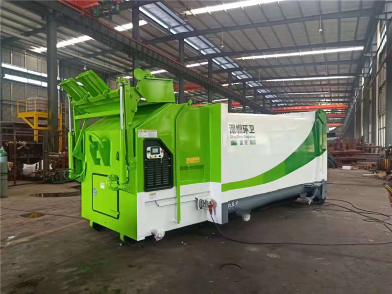 發(fā)往深圳環(huán)衛(wèi)8-20立方移動(dòng)式壓縮垃圾箱,顏色隨心,尺寸定制。