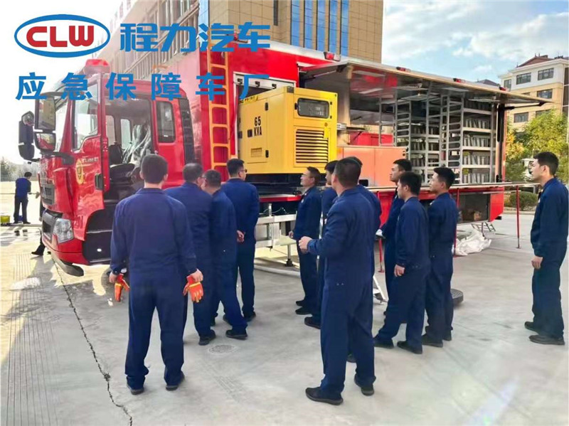 重汽豪沃可移動被服洗滌車,可滿足消防士兵50KG洗衣量同時帶烘干功能, 帶發電機可供洗衣機和烘干機同時工作,并配備有鋁型材置物架放置清洗干凈后的衣服,適用于野外戰訓和消防救援等武警官兵后勤保障服務。