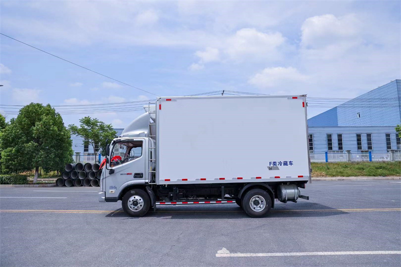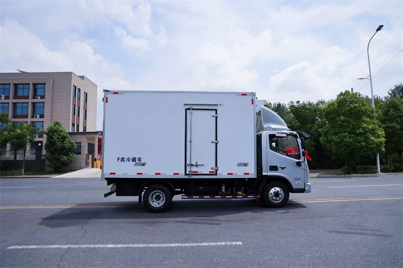 符合武漢規定藍牌國六奧鈴速運肉鉤冷藏車,滿焊下沉通風槽,30公分護板,4排肉鉤導軌。程力肉鉤冷藏車主要使用冷王、開立機組,高端冷藏車首選,制冷性穩定,冷藏車頂部加固。
