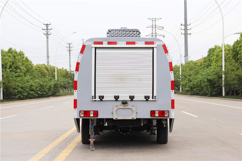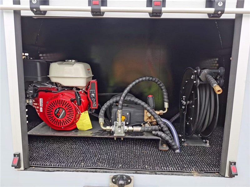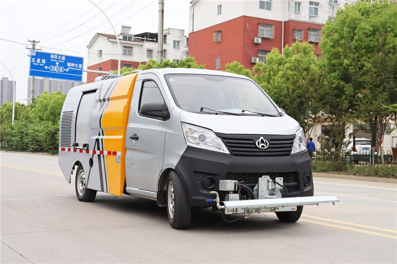 長安路面養護車上裝配置:1.5方電泳防腐水箱,本田/百力通副發可選,GYM/德國品孚高壓水泵可選,前置寬噴水架,電控開關可控制上下升降、左右擺動,20米高壓卷盤,單點多方位噴射桿。