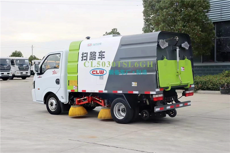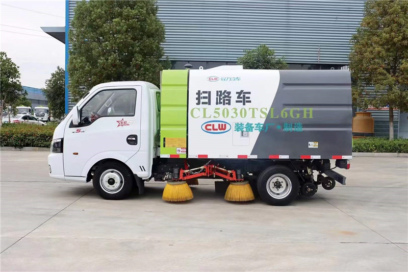 該款藍牌掃路車整車型號為CL5030TSL6GM型程力牌掃路車主要配置:柳汽112馬力,帶掃盤 4 把,云內 57馬力 副發動機,力沃馬達,施耐德控制開關,海普瑞斯電磁閥組, 免維護自動分離式離合器,免維護風機,1垃圾箱 1.5m3,水箱 0.5m3,手動泵應急系統。掃盤有防碰撞、自動避讓功能,可根據地面泥沙嚴重程度及行車速度選擇掃盤的清掃方式;吸嘴為后置浮動式,可自動調節適應地面凹凸不平的狀況;可調節的霧狀噴灑水壓塵,在節水的同時消除二次污染。