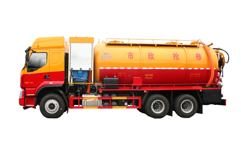 水罐污罐內(nèi)封頭隔斷。清水罐兩側(cè)一邊一個(gè)消防栓進(jìn)水口(副駕駛一側(cè)直通罐頂),兩側(cè)安裝量管、安裝小球閥放水。清水罐底部一個(gè)65方形排水閥。清水罐頂一個(gè)排氣閥。兩個(gè)三爪罐口(清水罐一個(gè),污水罐一個(gè))。清水罐、污水罐內(nèi)部安裝爬梯。視糞窗(安裝圓球閥),兩倉互通。污水罐體內(nèi)鋪不銹鋼薄板,罐體尾部一個(gè)700液壓開蓋,罐體兩側(cè)平臺(tái)用花紋板圍邊,平臺(tái)做滿。罐后封頭左側(cè)球閥1個(gè)6寸150球閥和4個(gè)寸的自流一個(gè),600液壓門,右側(cè)4寸100鋁合金進(jìn)料口。寸自流口后不開大門。體副駕駛后部一個(gè)150不球閥側(cè)排。清水罐、污水罐互通。平臺(tái)罐頂部兩側(cè)防滑平臺(tái)和護(hù)欄,后封頭一個(gè)視污管(安裝圓球閥),罐頂抽氣管加一個(gè)球閥開關(guān),里面安裝自制防溢流閥。雙耀品浮315流量高壓泵,氣吹水,100米25高壓管,選裝濰柴420副發(fā),后封頭液壓卷盤折疊、伸縮。后尾部封頭裝箭頭燈。M型保險(xiǎn)杠(兩邊封口),安裝大工具箱,按照客戶提供圖片制作,其余廠內(nèi)標(biāo)配。