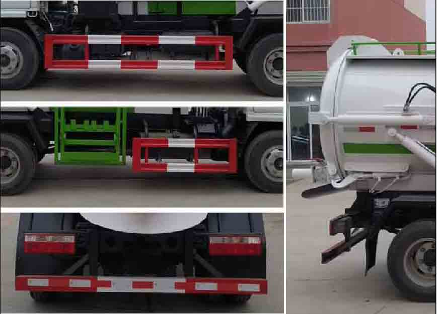 1、僅選用3308mm軸距底盤改裝。2、該車可選裝內部推板、加熱裝置,不影響整車外觀,但會引起整車重量變化,該車可選 裝A:內部推板裝置B:內部加熱裝置C:真空吸污裝置,當無選裝裝置時:整備質量/額定載 質量對應關系為(kg):4370/2860;當選裝A、B、C裝置中任意一項配置時,整備質量/額定 載質量對應關系為(kg):4800/2430;當選裝A、B、C裝置中任意兩項配置組合時,整備質 量/額定載質量對應關系為(kg):5100/2130;當A、B、C裝置全部選裝時,整備質量/額定 載質量對應關系為(kg):5250/1980。3、防護材料:Q235B碳鋼,連接方式:左右側面及后下部防護均采用焊接連接,后下部防護斷面尺寸(mm):120×50,后下部防護離地高度(mm):380。4、ABS型號/廠家:ABS/ASR-12V-4S/4M/襄陽東風隆誠機械有限責任公司。5、專用裝置:側裝垃圾桶提升裝置,主要用于餐廚垃圾收集及轉運。6、隨底盤選裝駕駛室,該車可選裝爬梯,可選裝帶真空吸污裝置上裝外觀,提升機外觀,視窗后置。