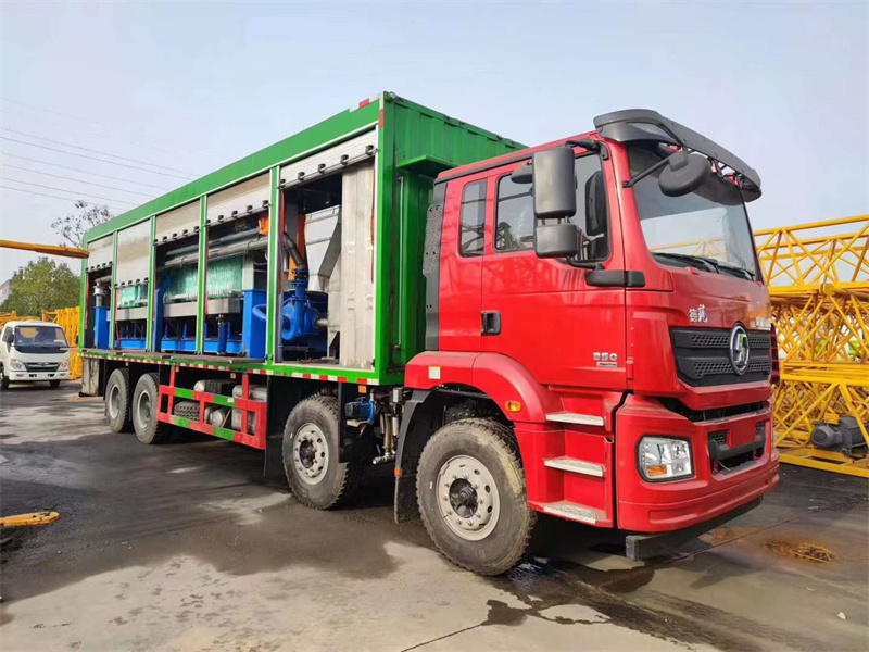 陜汽德龍前四后八泥漿處理車,底盤配濰柴350馬力國六發動機,標準駕駛室液壓懸置,空氣坐椅,手動翻轉,電動窗機,空調,ABS,方向助力,斷氣剎,法士特10檔變速箱,車橋速比MAN16T雙級4.266漢德16噸雙極輪邊減速橋。308直通雙層大梁,局部三層8+5+8。